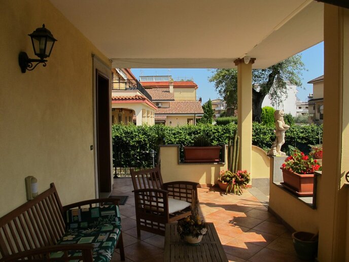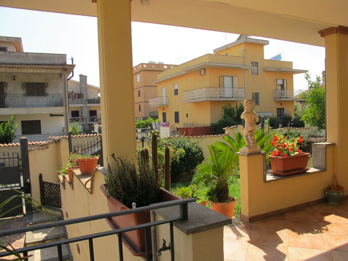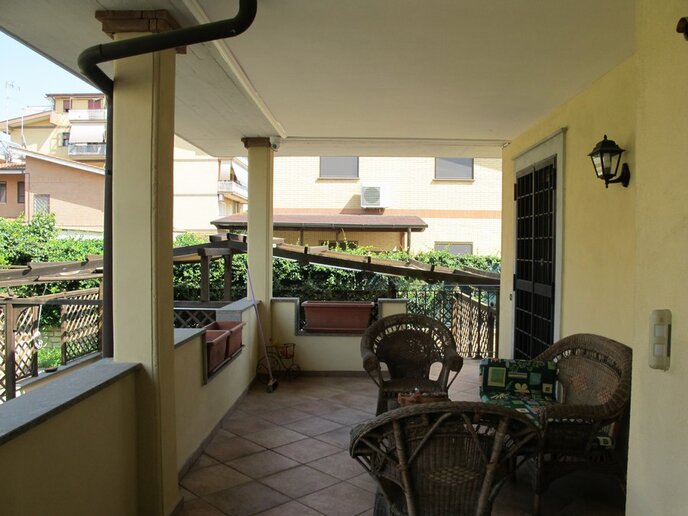 Il piano rialzato è composto da un ampio salone doppio e cucinotto , un ampio bagno due portici coperti anteriore e posteriore collegati tra di loro da una balconata dai quali si accede al giardino sia anteriore che posteriore, al piano primo c'è la zona notte composta da due camere di cui una matrimoniale e una singola ed un ampio bagno, la zona notte, non mansardata è regolarmente abitabile, la stessa è circondata da un ampio terrazzo con ottima vista su tre lati. Le finiture sia interne che esterne sono di pregio compresi gli arredi del giardino con gazebo e grigliati in legno. L'abitazione dispone di riscaldamento autonomo, impianto d'allarme e telecamere, la rimessa è in grado di ospitare oltre tre vetture con ulteriore spazio da adibire a cantina. Se cerchi un porzione di villino angolare che si differenzia dalle solite nuove costruzioni su tre livelli di cui due sono cantina e soffitta, questa è la casa che fa al caso tuo.