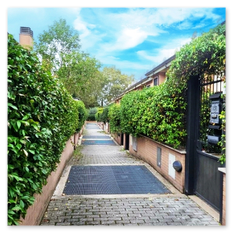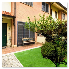Entrata dal vialetto condominiale con accesso indipendente all’abitazione alla quale è possibile accedere anche dal box situato negli appositi locali rimessa con apertura motorizzata a radiocomando con ulteriore portoncino blindato nell’interno per accedere al piano taverna.